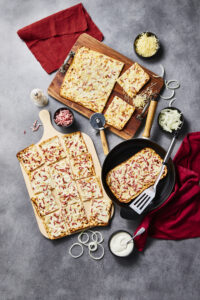 Les nouvelles flammekueche Stoeffler adoptent un format rectangulaire et se parent d’une garniture encore plus généreuse que la précédente recette pour une plaisir décuplé.